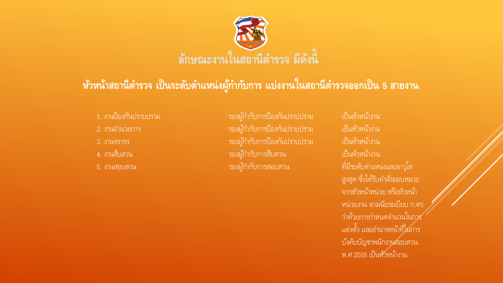 อำนาจหน้าที่ของแต่ละตำแหน่งในสถานีตำรวจ