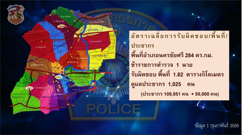 แผนผังแสดงเขตพื้นที่รับผิดชอบของ สถานีตำรวจภูธรนครชัยศรี (Google map)