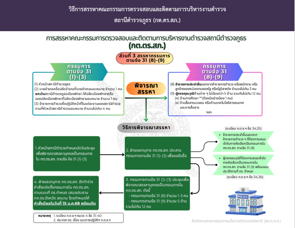 (เอกสารอ้างอิง) วิธีการสรรหาคณะกรรมการตรวจสอบและติดตามการบริหารงานตำรวจ สถานีตำรวจภูธร (กต.ตร.สภ.)